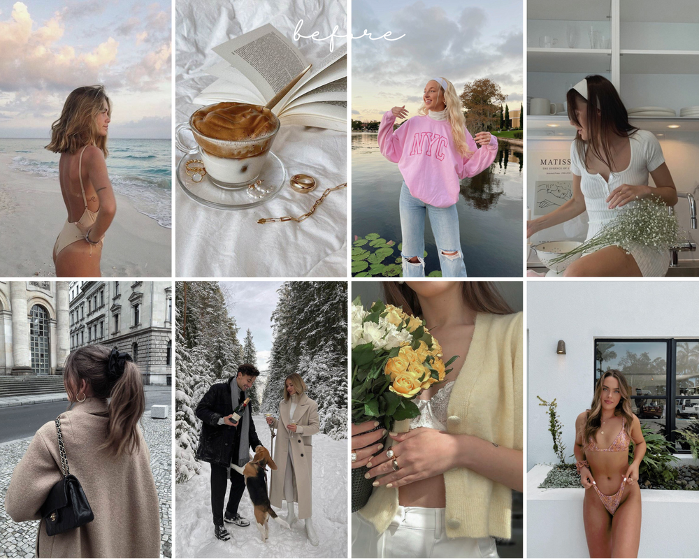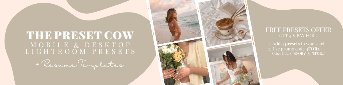 I use the displayed content below on a daily basis for my Etsy shop, "The Preset Cow" which specializes in predefined photography edits. This showcases my use of graphic design skills, Canva proficiency, and my understanding of the importance of congruency in brand materials. Since my shop launch, I've achieved 167K+ unique visits, $27K+ in revenue, and 13,000+ sales over a 1-year period, maintaining a 5.6% conversion rate. Additionally, I'm responsible for 85% of traffic & brand awareness by promoting the shop across Pinterest & Instagram socials. I also gained 370+ rave industry reviews in 1st year through a focus on follow-up culture & customer satisfaction.